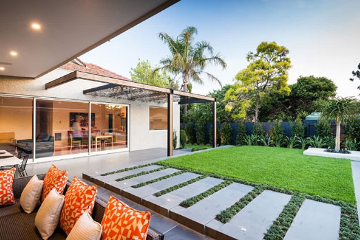 4)在別墅庭院景觀設計中,石頭這類耐用的材料,不僅僅可以用作裝飾品,還可做地板的天然材料,另外,在門口也越來越流行安放一塊大理石踏板,用來烘托房子的品位。