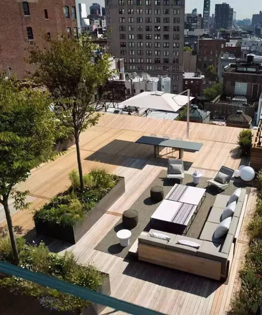 隨著人們生活條件的日益提高,多層階梯式公寓和別墅的出現(xiàn),使屋頂花園逐漸走入了人們的家庭生活。該類型的屋頂花園建于自家天臺或露臺上,是家人的朋友享用的私人空間,通常面積與荷載較小、布置精美、生活化,即可作為休閑場所,也可作為晾衣養(yǎng)花的功能性場所。